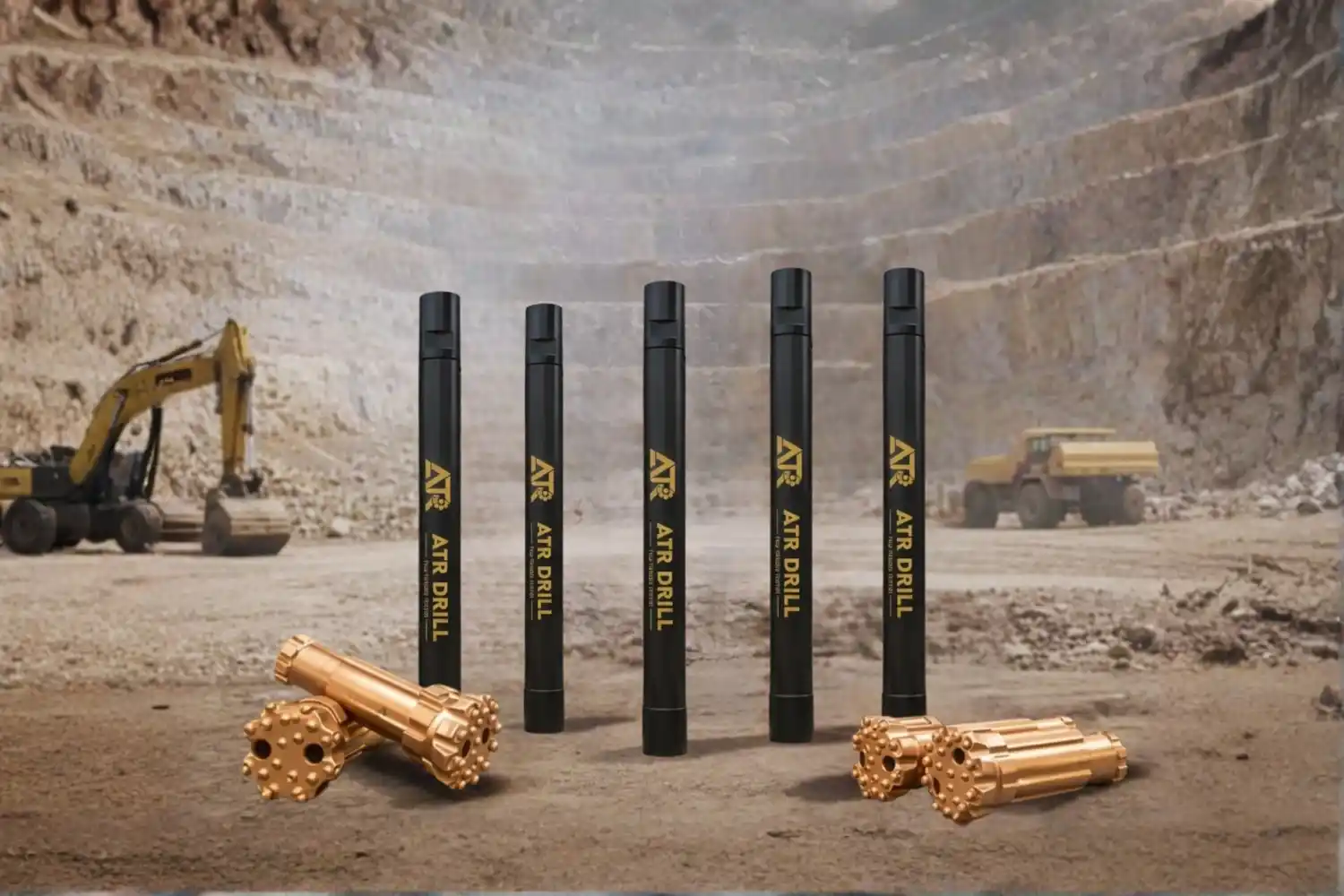 Mining and quarrying mostly use DTH rigs, Top Hammer rigs, tricone bits, blast-hole drills, hydraulic excavators, and heavy-duty compressors. These machines are designed for hard rock drilling, blasting, and high-volume material removal.